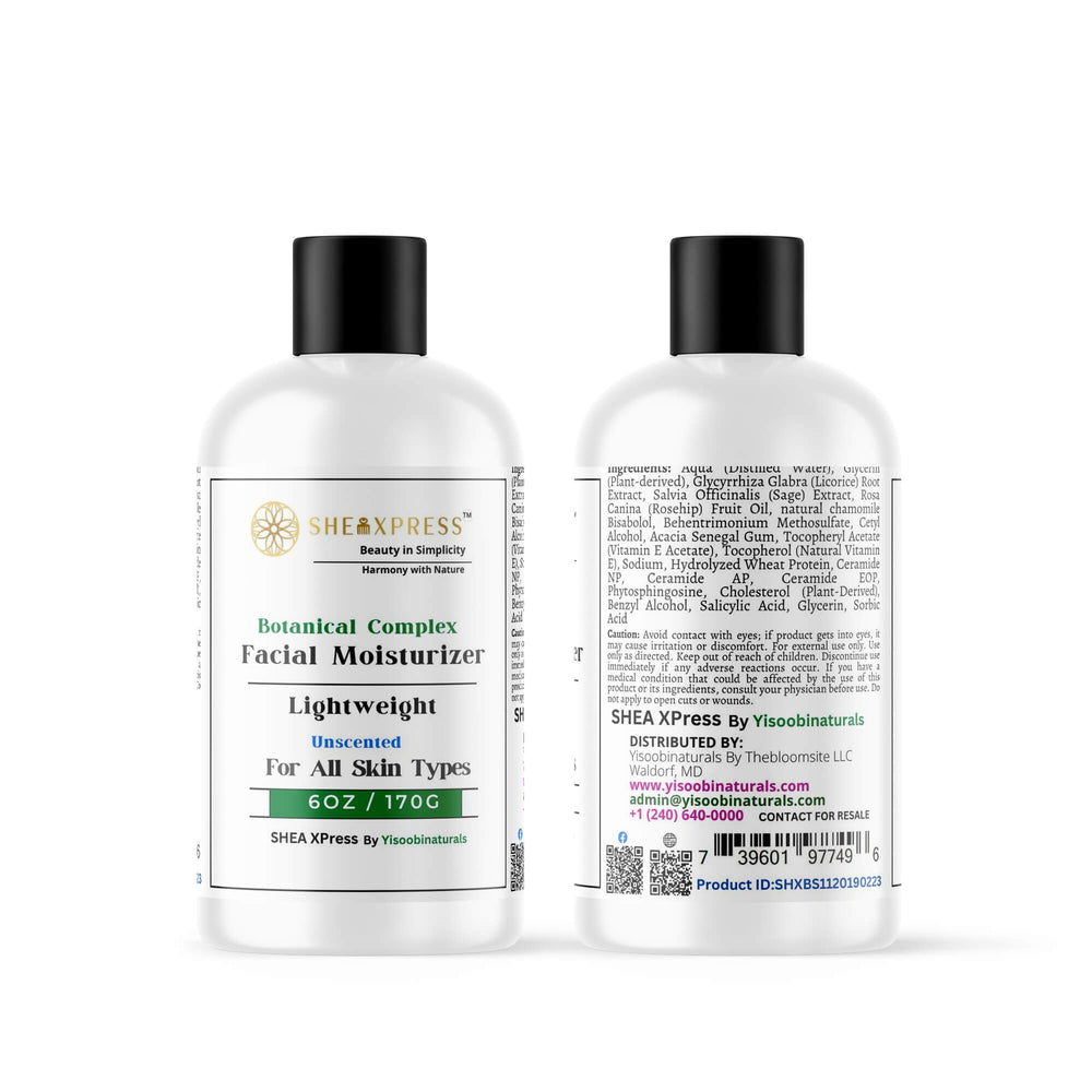 Hydrate, soothe, and protect your skin with the SheaXpress GlowSkin Botanical Complex Facial Moisturizer; a lightweight daily cream infused with lavender hydrosol, aloe vera, cucumber extract, hyaluronic acid, argan oil, panthenol, and vitamin E. Designed to calm and restore; this moisturizer delivers deep hydration while strengthening the skin barrier.