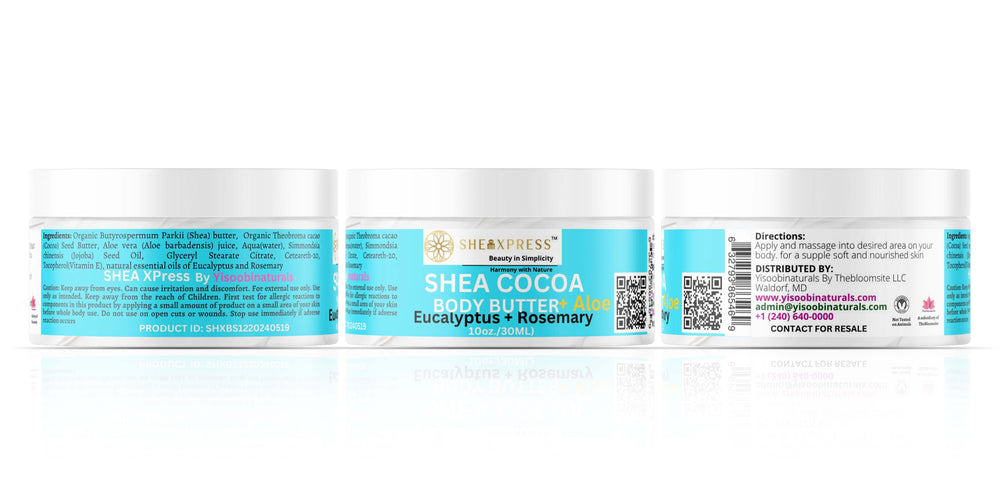 The Eucalyptus & Rosemary Aromatherapy Body Butter with Aloe delivers a refreshing, spa-like experience. Cooling eucalyptus revitalizes the senses, while rosemary provides herbal balance and clarity. Blended with shea butter, cocoa butter, and aloe, it deeply hydrates and softens skin while leaving behind a crisp, invigorating aroma.