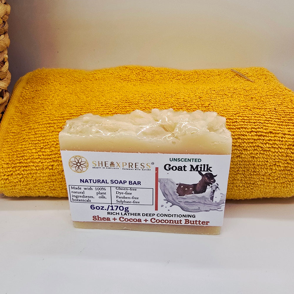 Cleanse and comfort delicate skin with the SheaRelief Goat Milk Soap Bar (Unscented); a gentle, fragrance-free cleanser crafted for eczema-prone and sensitive skin. Infused with pure goat milk; this bar hydrates, soothes irritation, and nourishes the skin barrier without added fragrance.