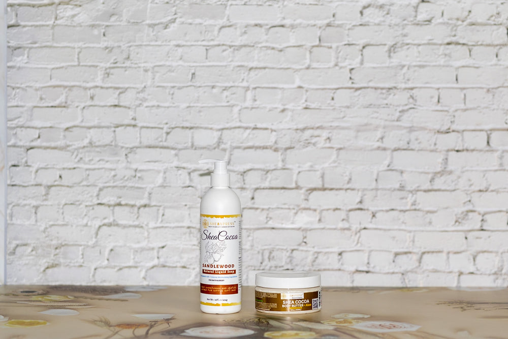 Shea-Cocoa Liquid Soap – A creamy, non-drying cleanser that purifies gently while leaving skin silky smooth; tagline: Silky cleanse. Clean beauty from head to toe.