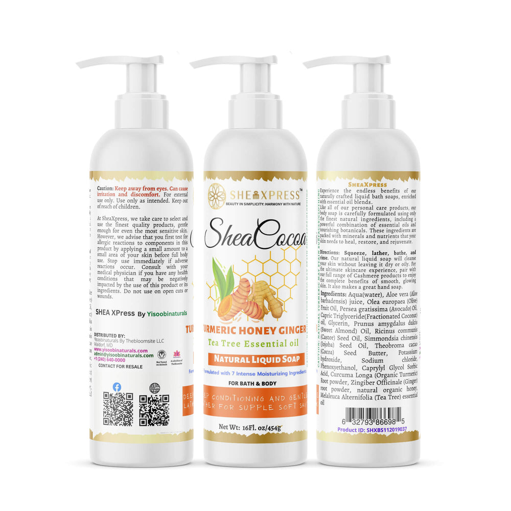 Give your skin a glow boost with our Turmeric Honey Ginger Liquid Soap. Turmeric helps brighten the look of skin, honey comforts and hydrates, and ginger refreshes and invigorates. The creamy lather rinses clean without leaving skin tight, making it a great choice for hands and body and a careful option for the face.