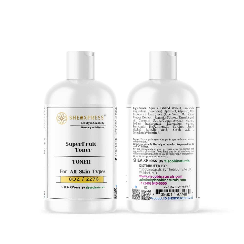 Refresh and rebalance your skin with the SheaXpress GlowSkin Superfruit Toner; a lightweight, antioxidant-rich formula designed to hydrate, refine, and restore balance after cleansing. Infused with superfruit extracts; this toner tightens pores, soothes skin, and prepares it to absorb serums and moisturizers more effectively.