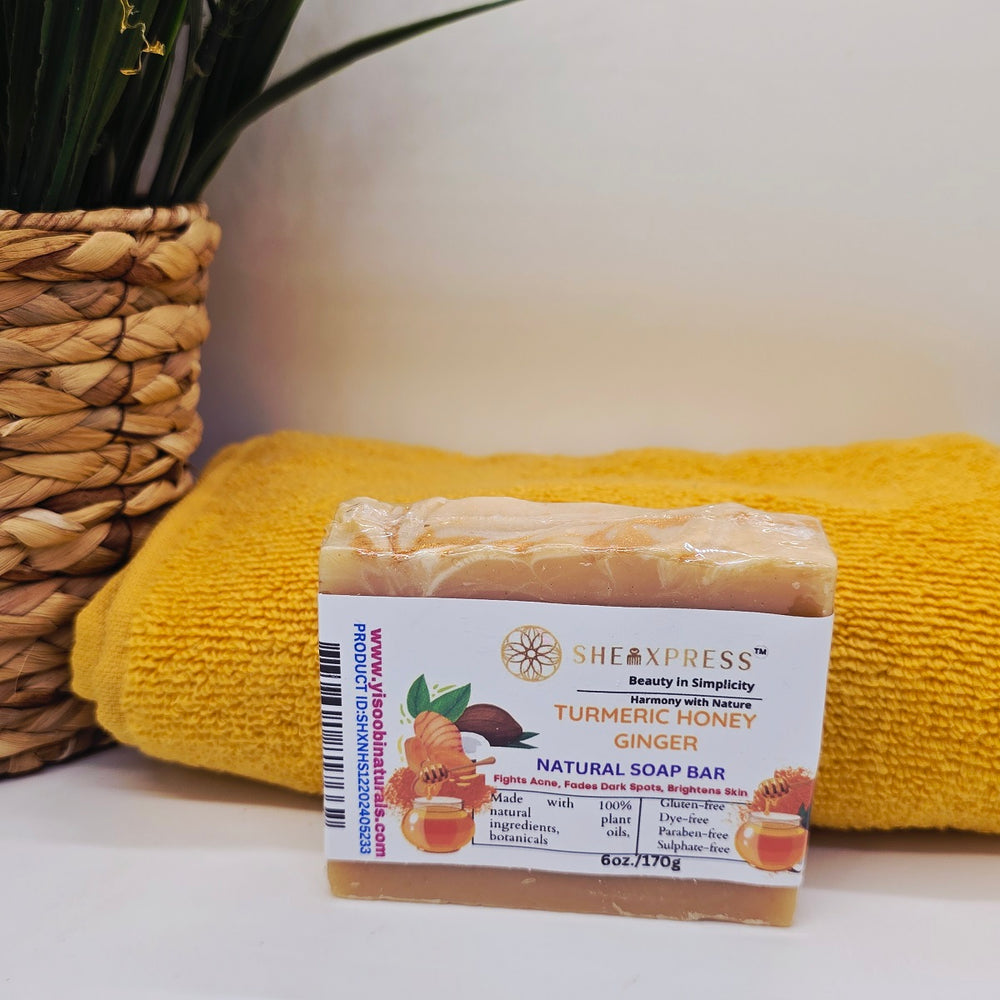 Soothe and protect your skin with the SheaRelief Turmeric Honey Ginger Bar; a gentle, non-stripping cleanser formulated for eczema-prone and sensitive skin. Enriched with turmeric, honey, and ginger; this bar calms irritation, reduces dryness, and leaves skin feeling soft and nourished.